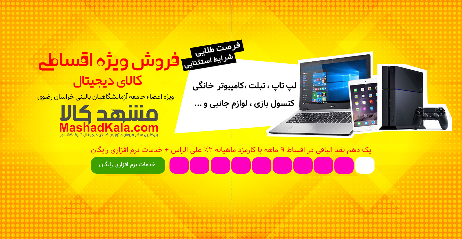 فروش اقساطی کالای دیجیتال توسط فروشگاه اینترنتی مشهد کالا به کارکنان طرف اول قرارداداعضاء جامعه آزمایشگاهیان بالینی خراسان رضوی